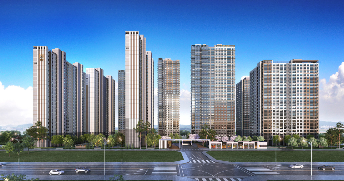 ※ 상기 투시도는 소비자의 이해를 돕기 위해 제작된 CG컷으로 측면 그래픽, 문양 및 외부색채, 단지조경, 세부식재, 외부 디테일 등은 실제 시공 시 세부계획이 변경될 수 있습니다.
